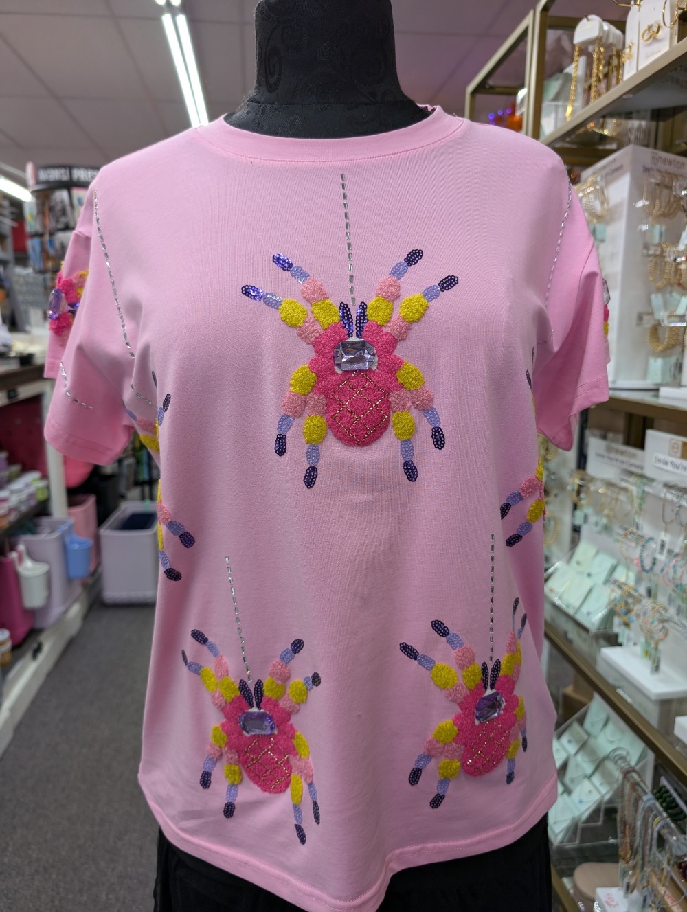 Home / Sale Queen / Queen Of Sparkles - Pink Scattered Spider Tee